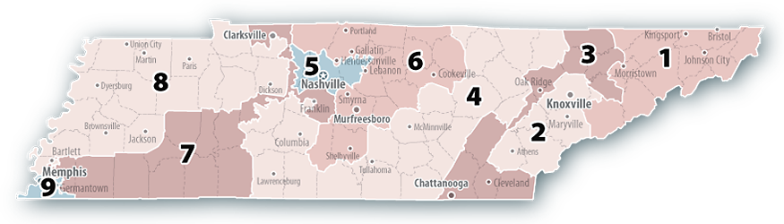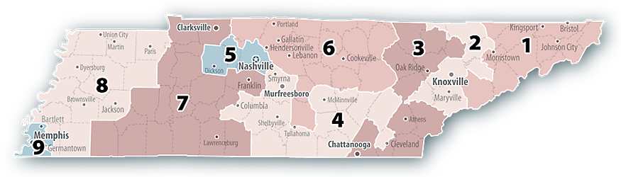 Only the 1st district remained relatively unchanged. Since, as in most states, the state legislature controls the redistricting process, the majority party will usually redraw the boundaries to its own political advantage, and few would argue that the Republicans in Tennessee didn’t do so this time.